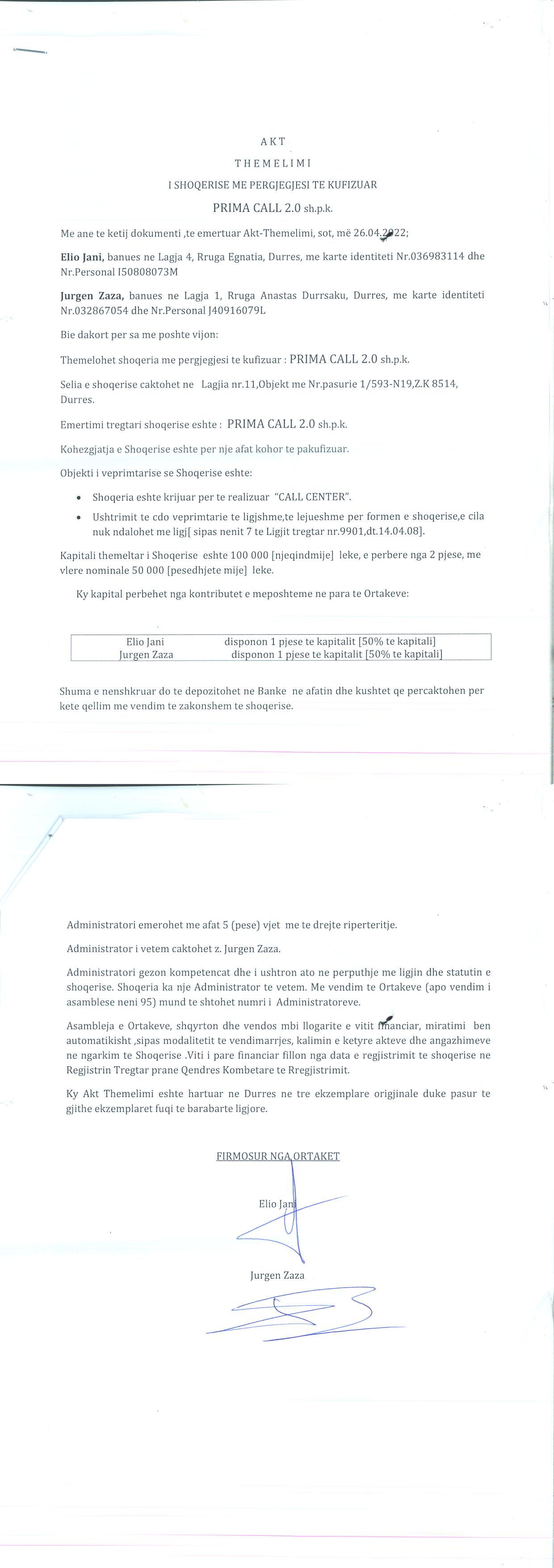→ Ekstrakti Historik i Regjistrit Tregtar date 04.05.2022 → Akt themelimi i Shoqerise |