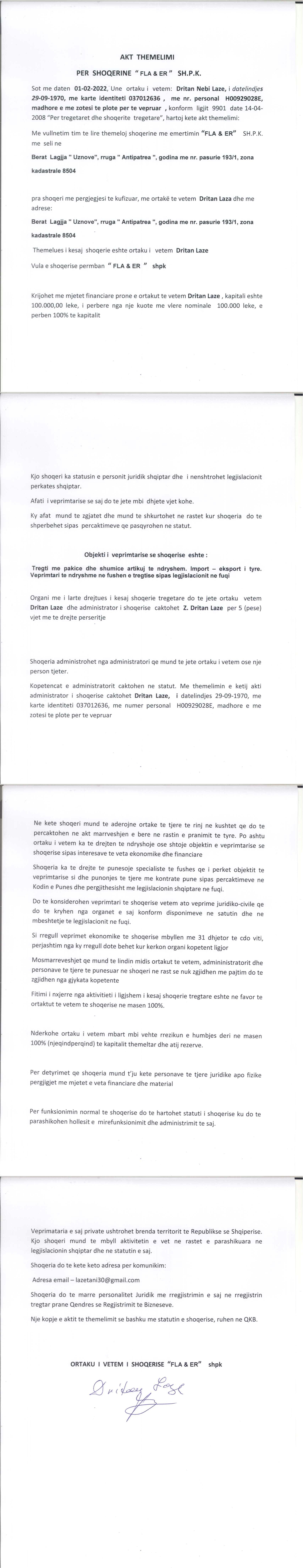 → Ekstrakti Historik i Regjistrit Tregtar date 09.02.2022 → Akt themelimi i Shoqerise |