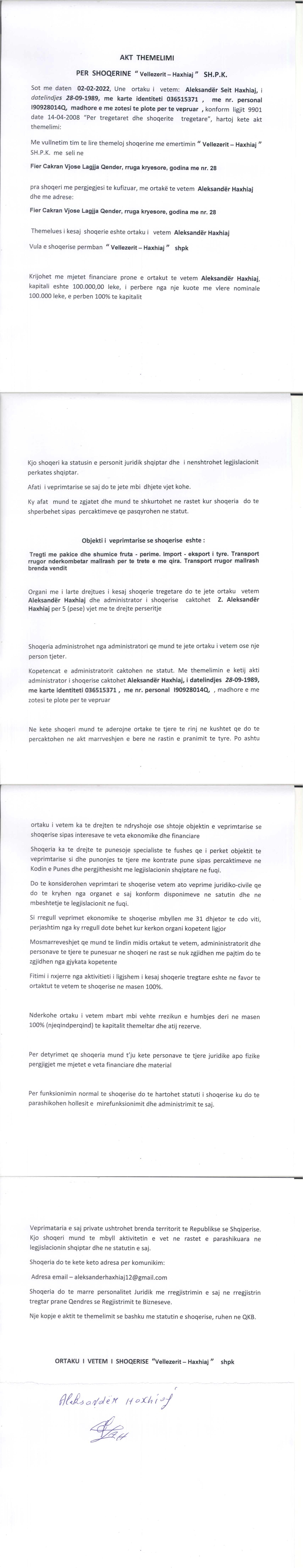 → Ekstrakti Historik i Regjistrit Tregtar date 09.02.2022 → Akt themelimi i Shoqerise |