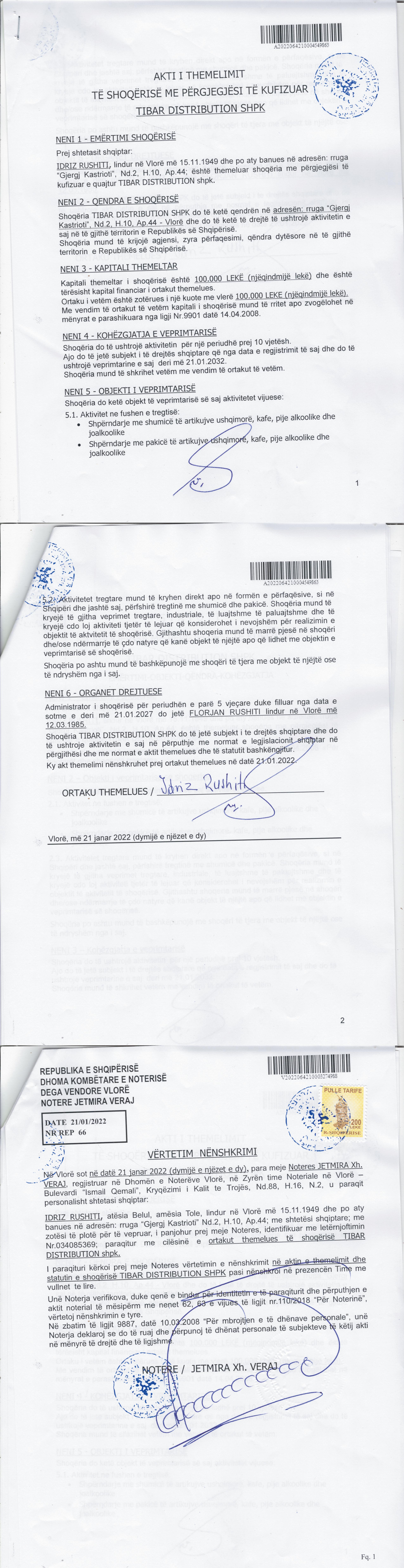 → Ekstrakti Historik i Regjistrit Tregtar date 04.02.2022 → Akt themelimi i Shoqerise |