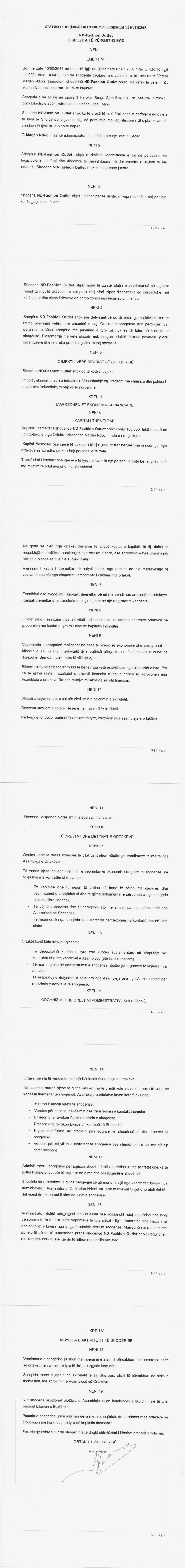 → Ekstrakti Historik i Regjistrit Tregtar date 23.02.2022 → Statuti i Shoqerise |