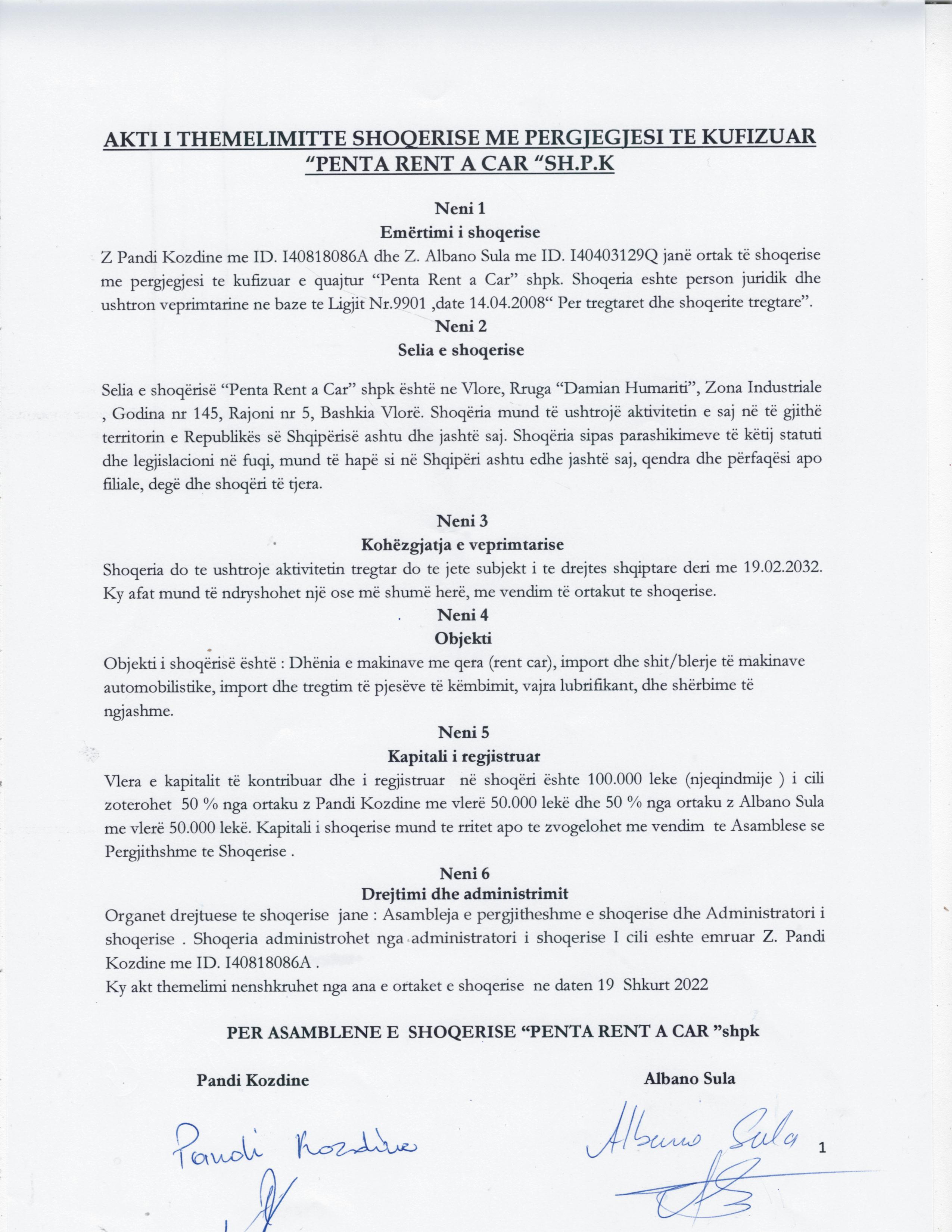 → Ekstrakti Historik i Regjistrit Tregtar date 23.03.2022 → Akt themelimi i Shoqerise |