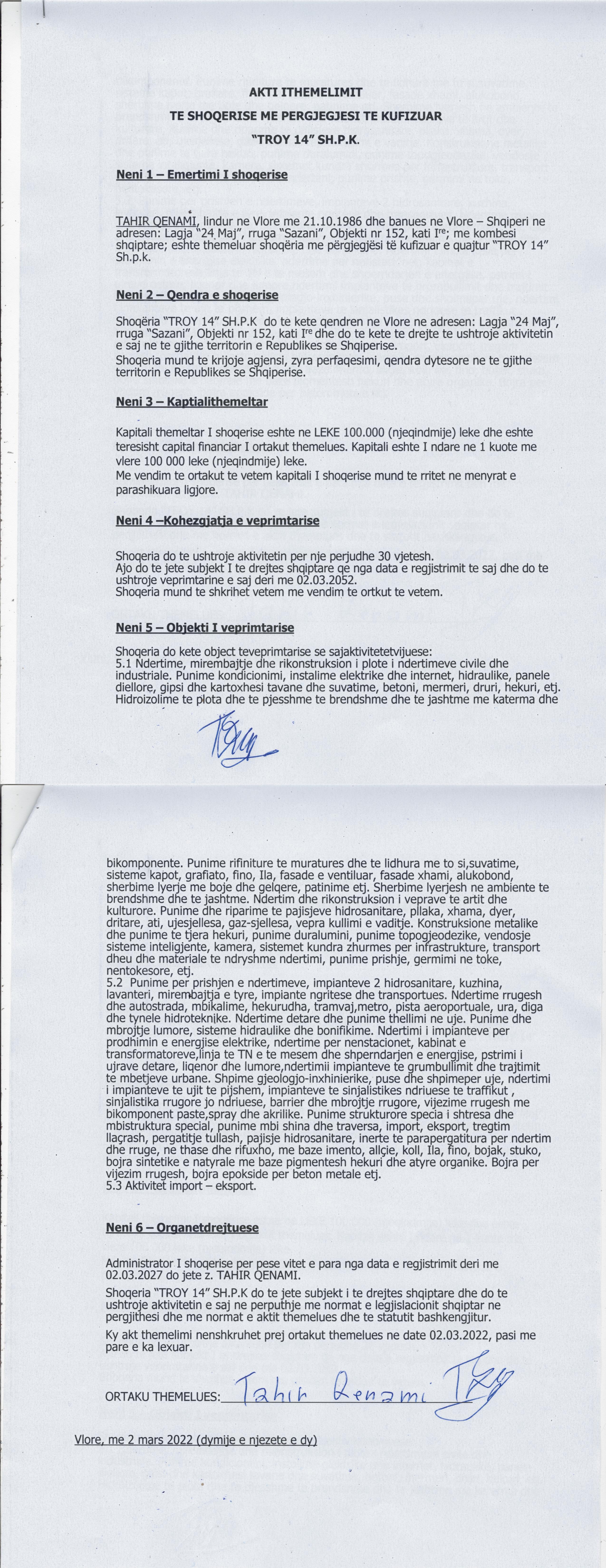 → Ekstrakti Historik i Regjistrit Tregtar date 24.03.2022 → Akt themelimi i Shoqerise |