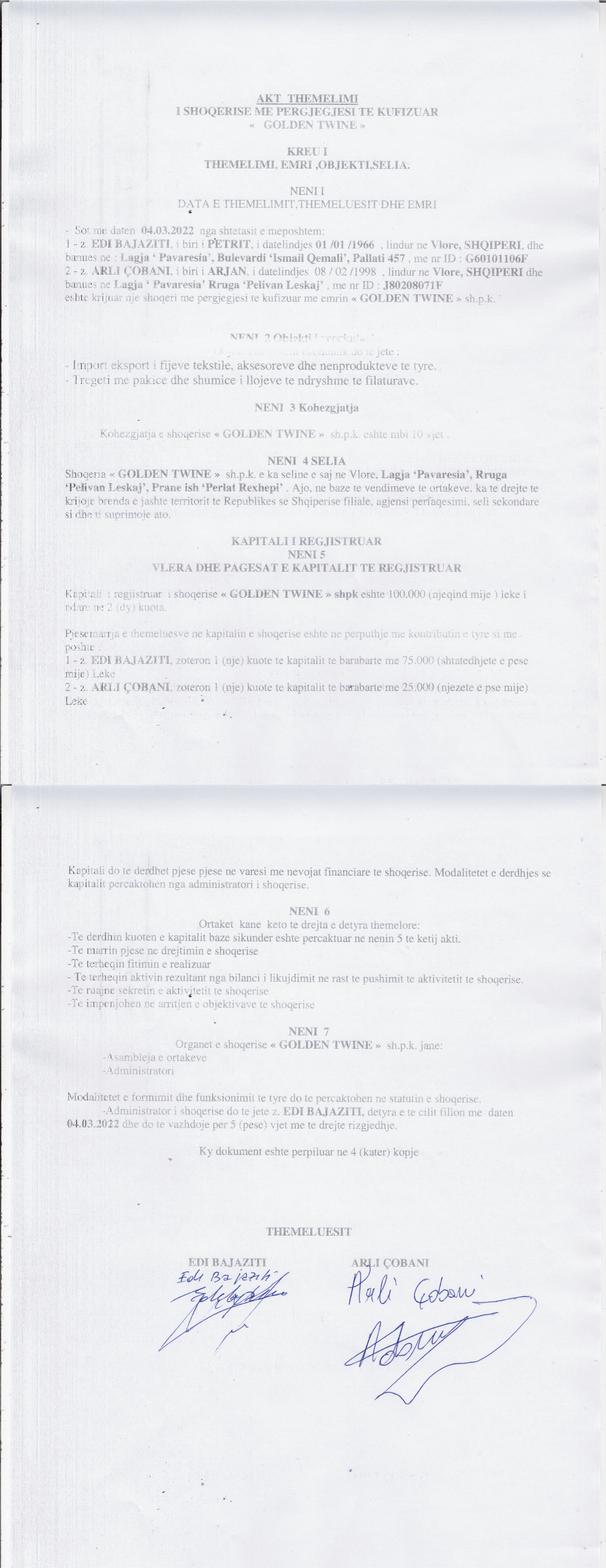 → Ekstrakti Historik i Regjistrit Tregtar date 24.03.2022 → Akt themelimi i Shoqerise |
