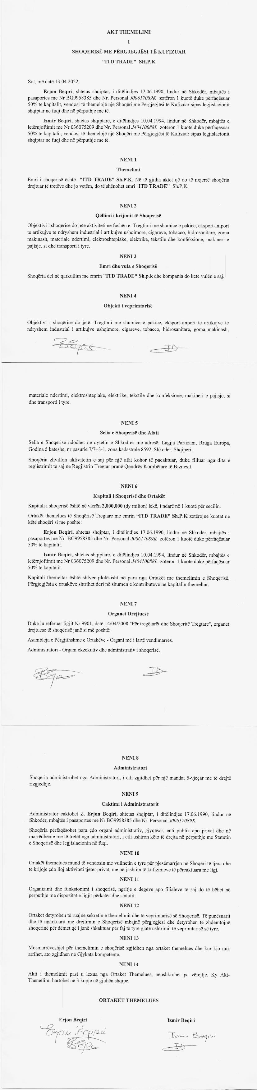 → Ekstrakti Historik i Regjistrit Tregtar date 29.04.2022 → Akt themelimi i Shoqerise |