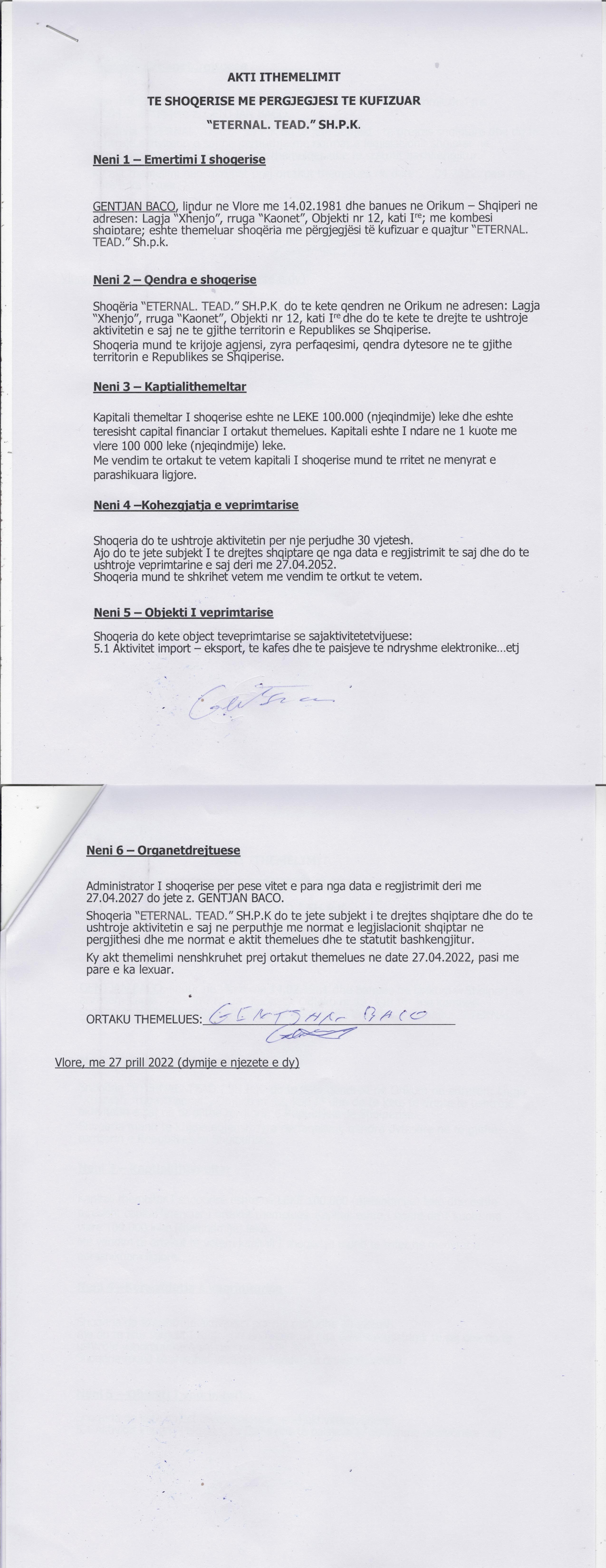 → Ekstrakti Historik i Regjistrit Tregtar date 04.05.2022 → Akt themelimi i Shoqerise |