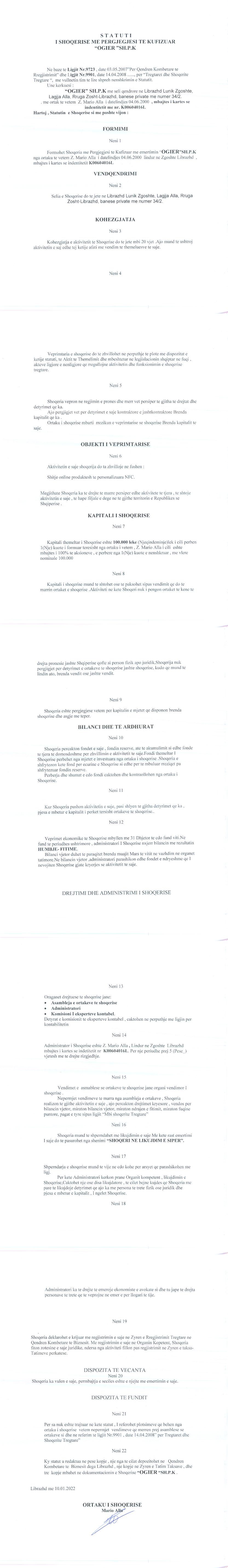 → Ekstrakti Historik i Regjistrit Tregtar date 15.06.2022 → Statuti i Shoqerise |