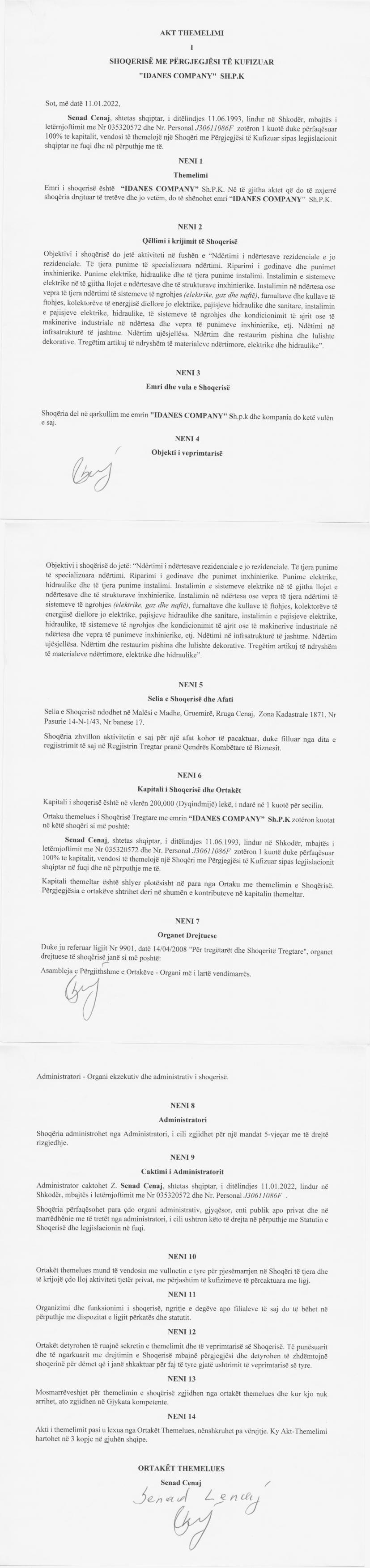 → Ekstrakti Historik i Regjistrit Tregtar date 15.06.2022 → Akt themelimi i Shoqerise |