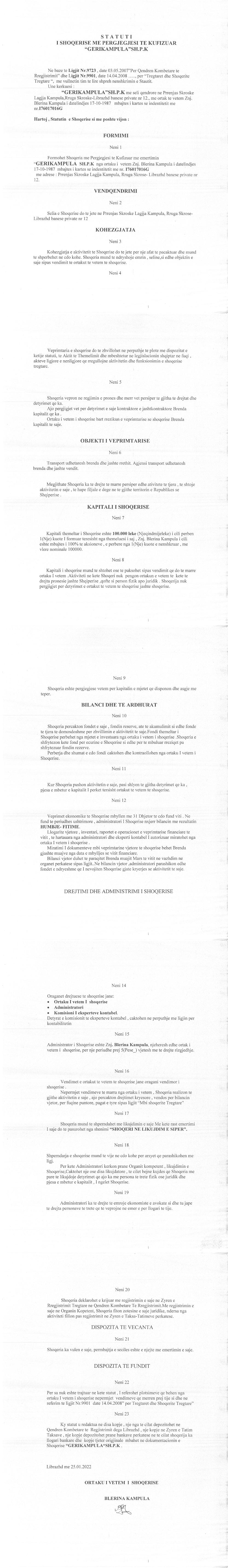 → Ekstrakti Historik i Regjistrit Tregtar date 07.02.2022 → Statuti i Shoqerise |