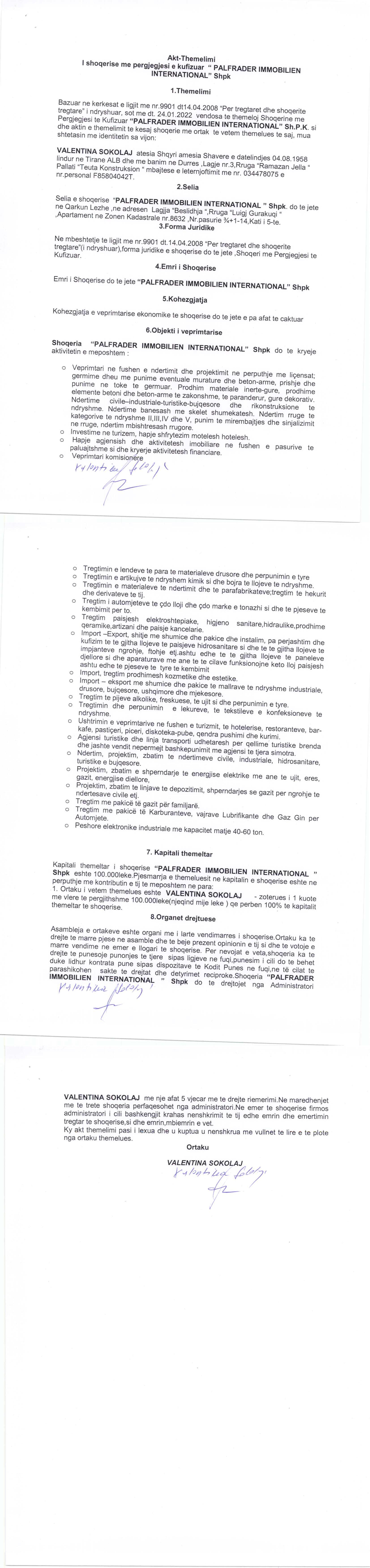 | Emërtime të tjera Tregtare: | “PALFRADER IMMOBILIEN INTERNATIONAL ” Shpk |