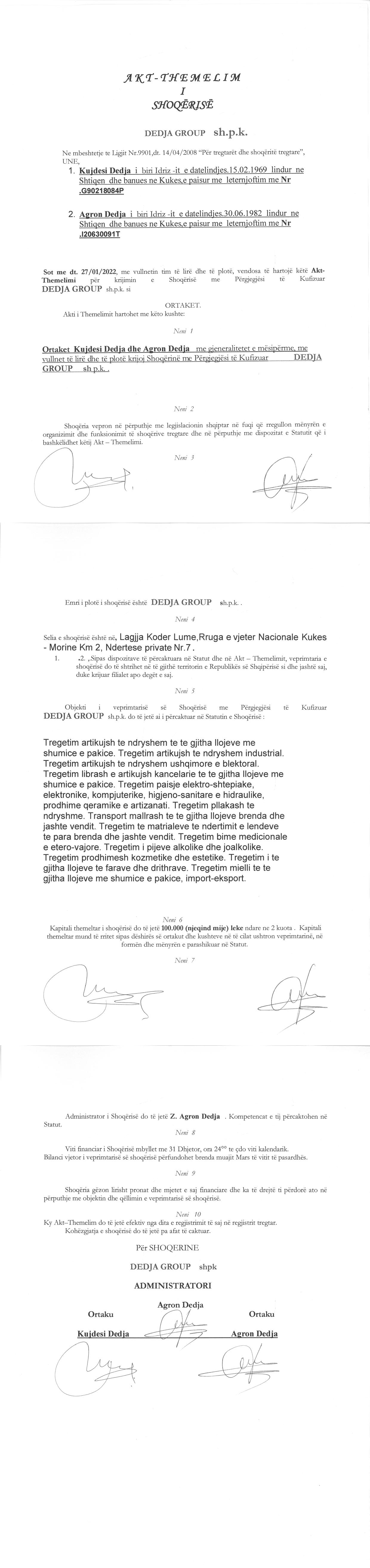 | Emërtime të tjera Tregtare: | DEDJA GROUP |