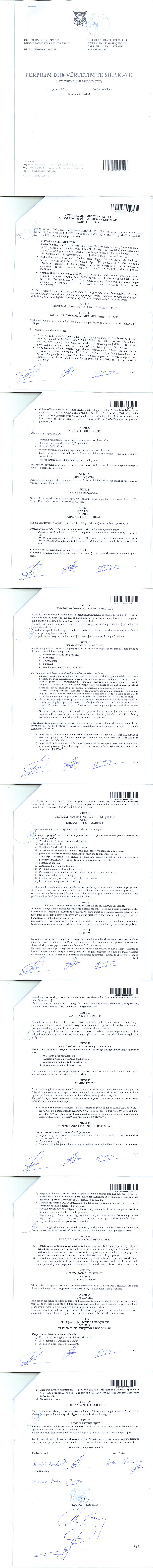 → Ekstrakti Historik Regjistrit Tregtar date 08.02.2022 → Akt themelimi dhe Statuti i Shoqerise |
