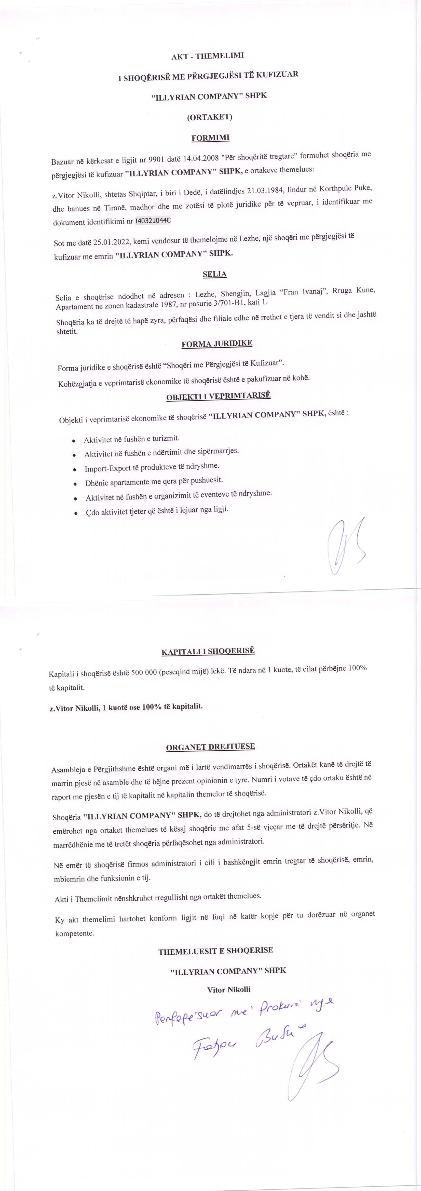 | Emërtime të tjera Tregtare: | "ILLYRIAN COMPANY" SHPK |