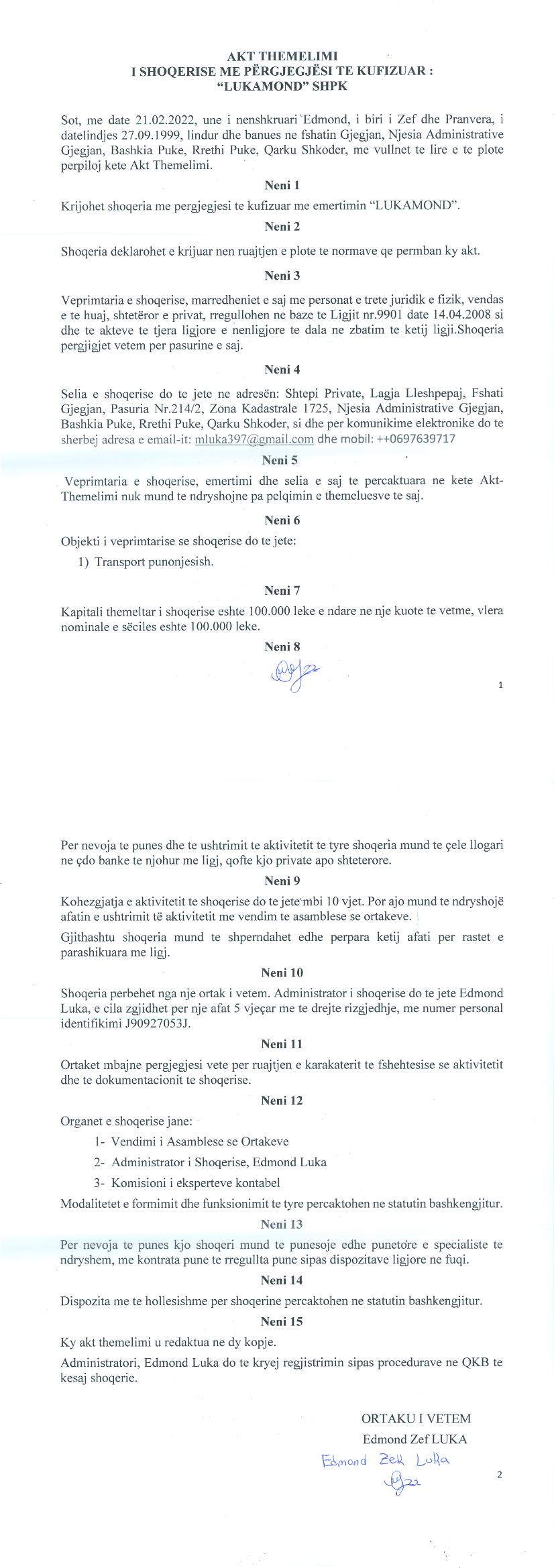 → Ekstrakti Historik i Regjistrit Tregtar date 28.02.2022 → Akt themelimi i Shoqerise |