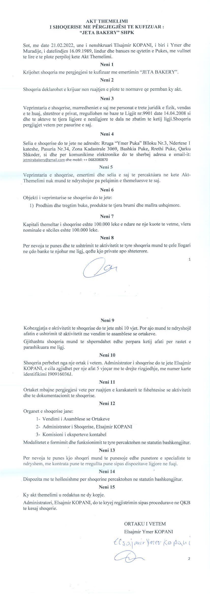 → Ekstrakti Historik i Regjistrit Tregtar date 23.03.2022 → Akt themelimi i Shoqerise |