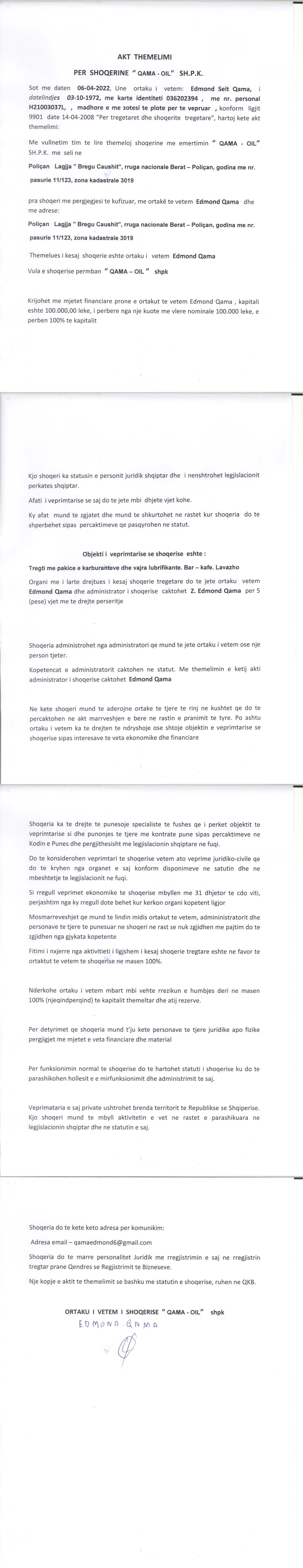 → Ekstrakti Historik i Regjistrit Tregtar date 11.04.2022 → Akt themelimi i Shoqerise |