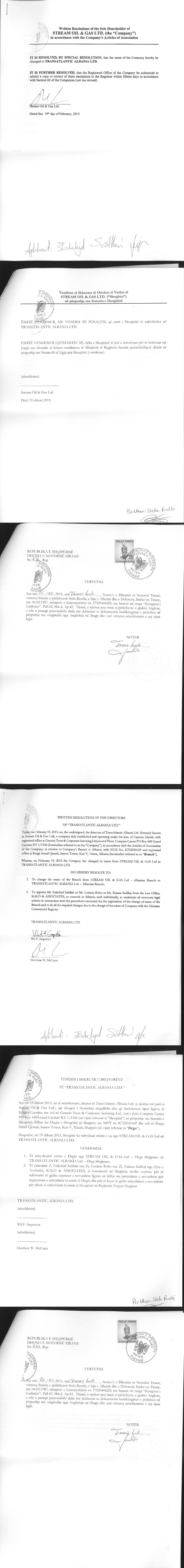 TRANSATLANTIC ALBANIA Ltd. - Dega Shqiptare (Ish DEGA NË SHQIPËRI E STREAM OIL & GAS LTD)