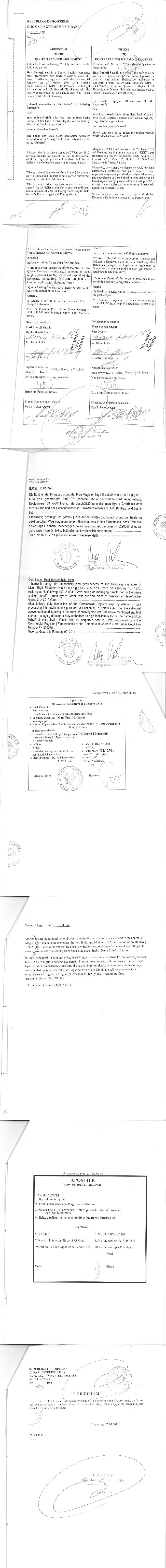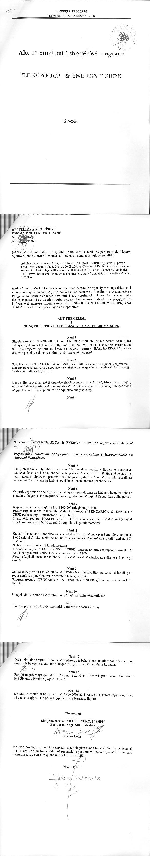 → Kontrate koncesioni (17.04.2008) → Marreveshje per disa shtesa dhe ndryshime per kontraten date 25.04.2009 → Ekstrakt historik i regjistrit tregtar 30.05.2022 → Vendim I asamblese per rritje kapitali 19.12.2018 → Marreveshje barre siguruese 27.09.2017 → Marreveshje pengu 17.04.2014 → Vendim I asamblese per rritje kapitali 15.04.2013 → Vendim I asamblese per rritje kapitali 17.12.2012 → Urdher per vendosje sekuestro 11.01.2017 → Urdher per heqjen e sekustros 09.06.2017 → Anekset e kontrates → Kontrate shit-blerje kuote 17.01.2020 → Struktura e kostos se plote te investimit te Hec Lengarica → EKSTRAKT HISTORIK I REGJISTRIT TË PRONARIT PËRFITUES date 21.05.2022 → Ekstrakti Historik i Regjistrit Tregtar date 02.04.2024 |