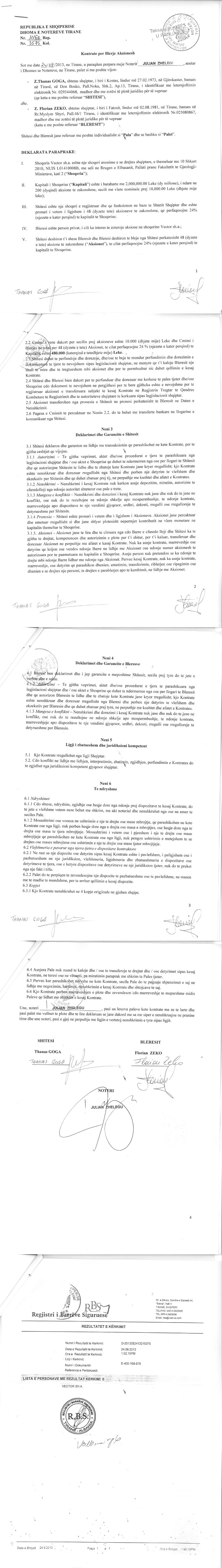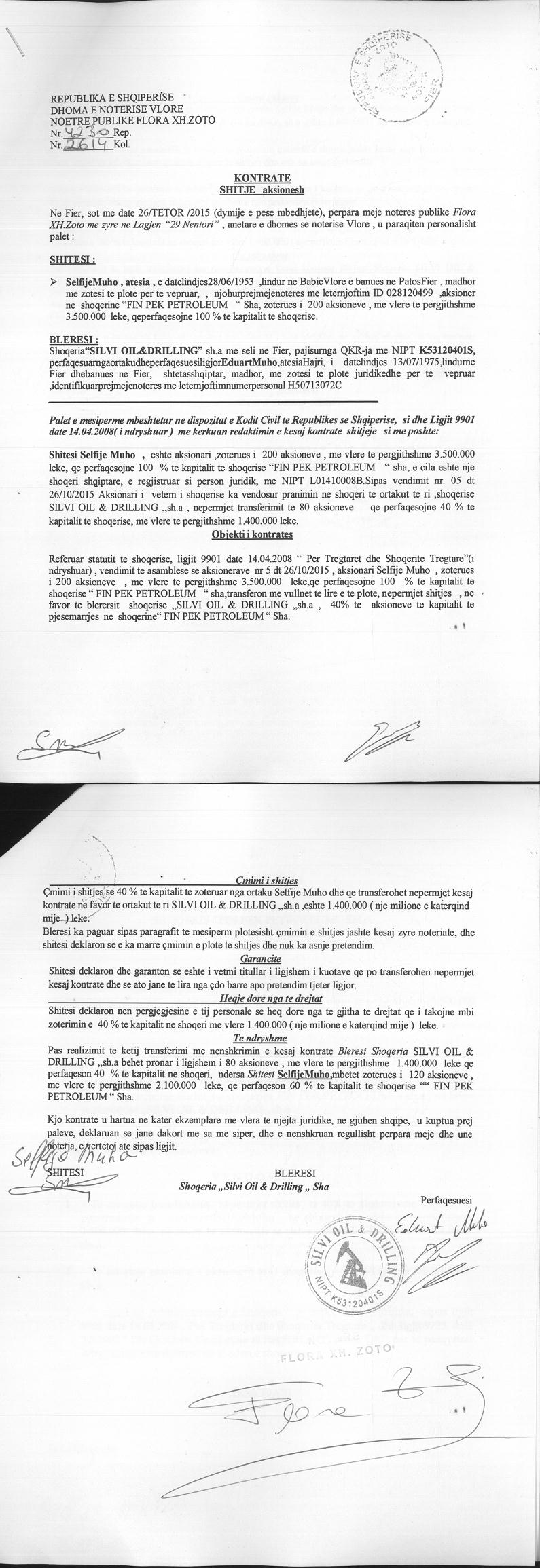 → Kompanite koncesionare ne industrine hidrokarbure 2018 (AKBN) → Ekstrakt historik i regjistrit tregtar 08.04.2023 → Akti i themelimit te shoqerise → Kontrate per blerje aksionesh 11.05.2012 → Kontrate per blerje aksionesh 24.09.2013 → Kontrate per blerje aksionesh 31.10.2013 → Kontrate per blerje aksionesh 28.04.2015 → Vendimi per zmadhimin e kapitalit 17.06.2015 → Kontrate shitje aksionesh 26.10.2015 → Kontrate shitje kuota kapitali date 12.08.2021 → Kontrate shitje kuota kapitali date 03.08.2021 → Ekstrakti Historik i Regjistrit Tregtar date 27.03.2024 |