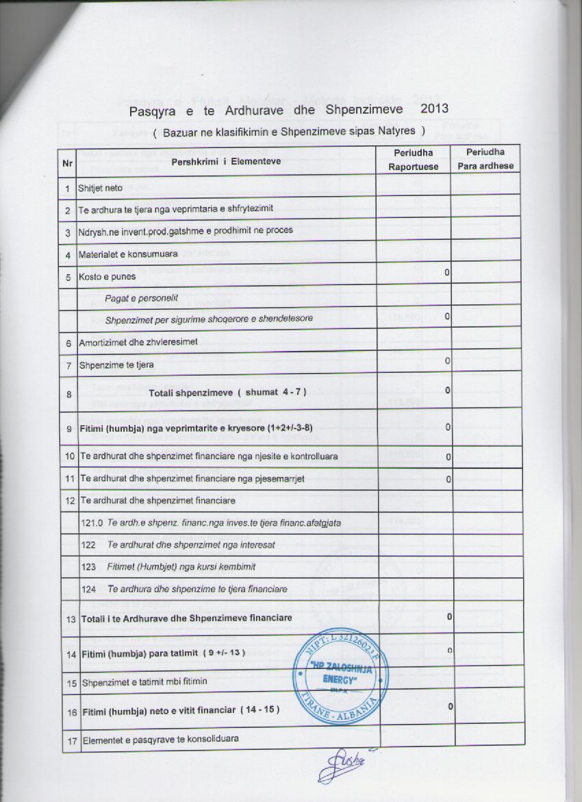 | Shënime: | Shoqëria “HP ZALOSHJA ENERGY” është një shoqëri me përgjegjësi të kufizuar e themeluar për zbatimin e kontratës konçesionare datë 03.09.2013, të nënshkruar midis shoqërisë bashkimit të përkohshëm të shoqërive “Zaloshnja HL” shpk dhe “LID” sh.p.k, si dhe Autoritetit Kontraktues Ministria e Ekonomisë, Tregtisë dhe Energjitikës. Objekti i kontratës është për financimin, projektimin, ndërtimin, vënien në punë, administrimin, mirëmbajtjen e hidrocentraleve “Bregu i Madh” dhe transferimin e tyre në përfundim të kontratës nga Konçesionari tek Autoriteti Kontraktues, konform kushteve dhe afateve të kësaj kontrate. Hidrocentralet “Bregu i Madh” do të ndërtohen në përrenjtë e Zaloshnjës, me këto karakteristika: Hidrocentrali 1 me fuqi të instaluar 665 kW dhe energjii mesatare vjetore 2.145.553 kWh/vit Hidrocentrali 2 me fuqi të instaluar 383 kW dhe energji mesatare vjetore 1.067.827 kWh/vit. |